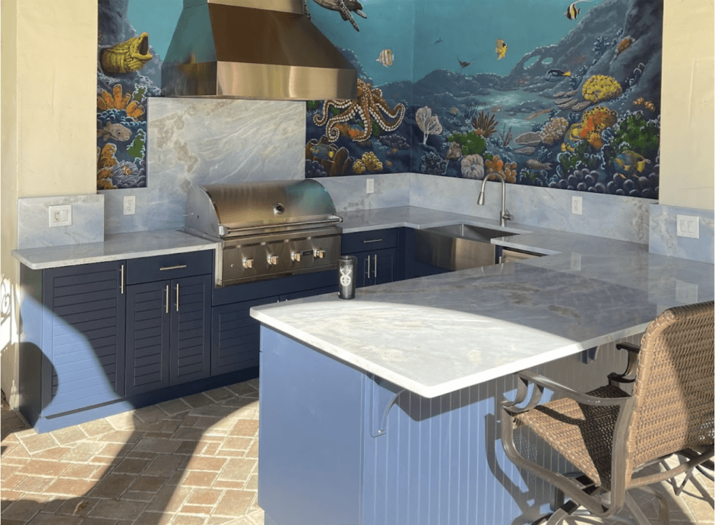 This project succeeds because it does not stop at adding appliances. It creates an experience. The Sapphire cabinetry adds character, the custom cabinet mix improves usability, and the overall design turns a simple covered patio into a vibrant entertaining space.