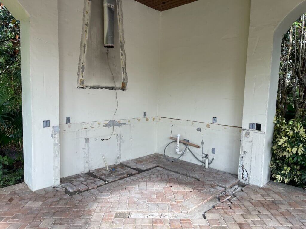 At the start, this outdoor kitchen was little more than a framework. The area had the structure and utilities in place, but it lacked warmth, storage, personality, and the design details that make an outdoor living space inviting. It had the footprint for something special, but not yet the function or visual impact.