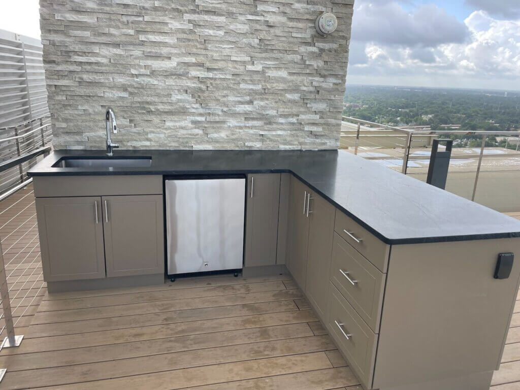 Rooftops are one of the most exciting places to install an outdoor kitchen because they turn underused square footage into a functional entertaining area. In multifamily buildings, hospitality properties, and private residences, a rooftop kitchen can support food prep, casual dining, and social connection without compromising style. The L-shaped and straight layouts are especially effective in these settings because they maximize prep space while working efficiently within tighter footprints.