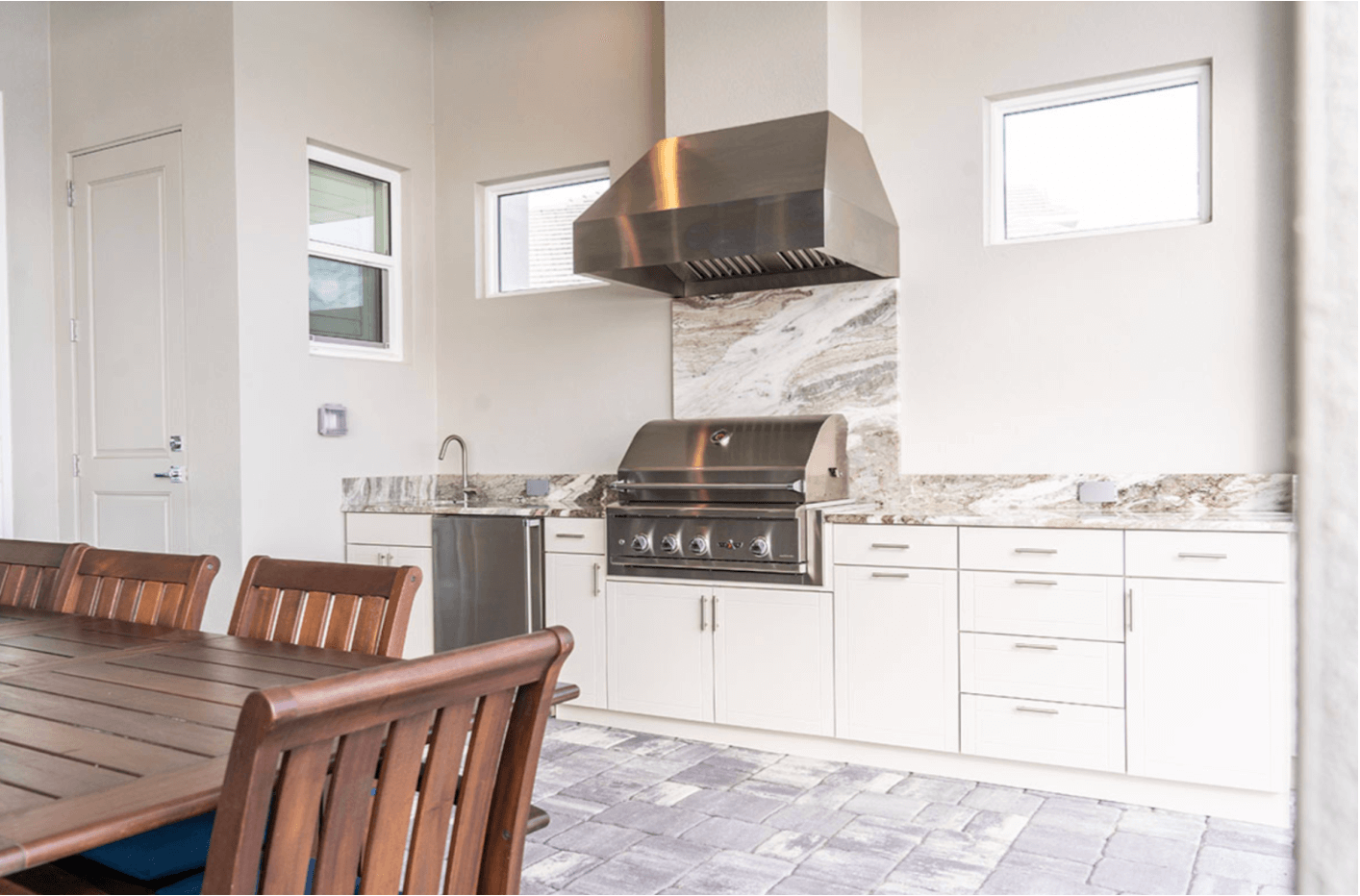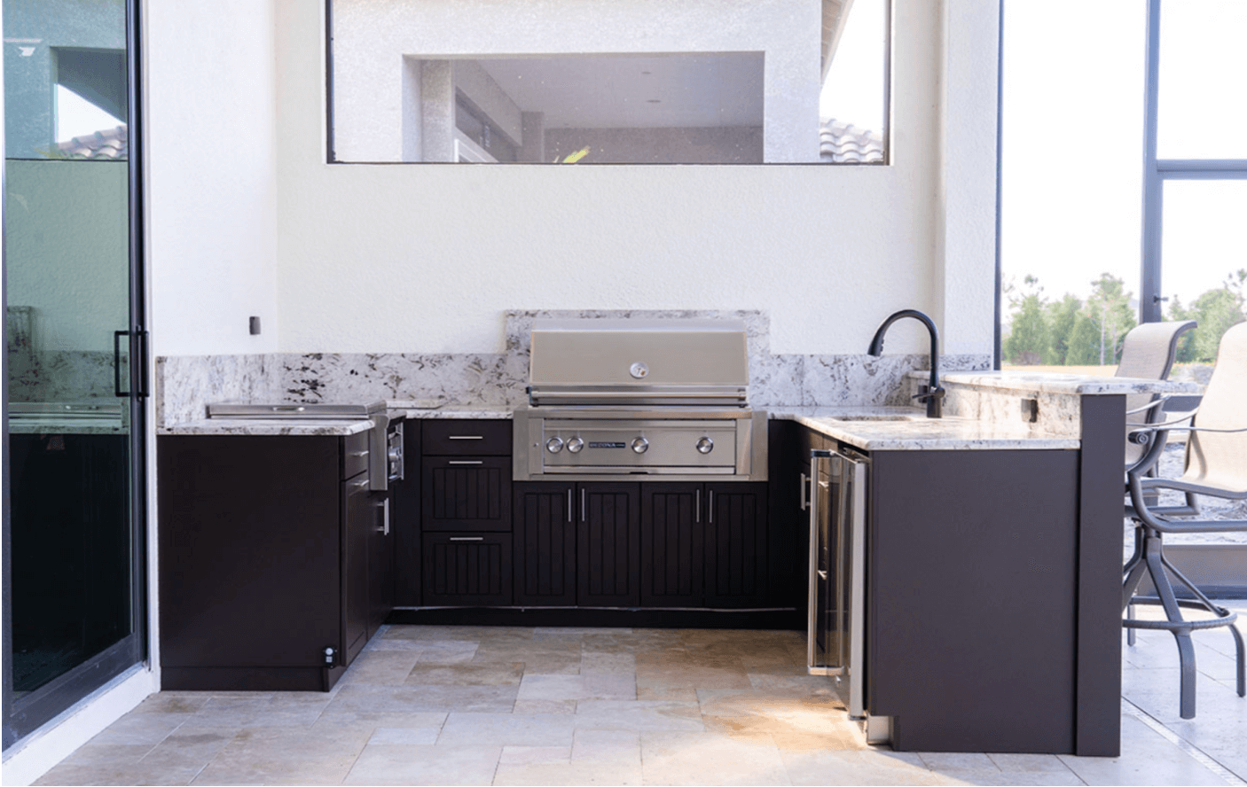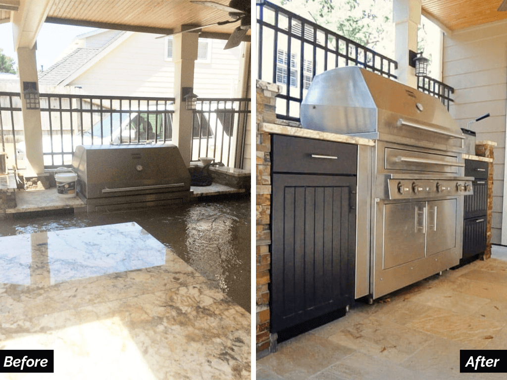 We’ve received testimonials from clients whose outdoor kitchens have survived Hurricane Harvey, Hurricane Milton, and other major weather events. A simple hose-down and wipe-down is all it takes to return them to like-new condition.